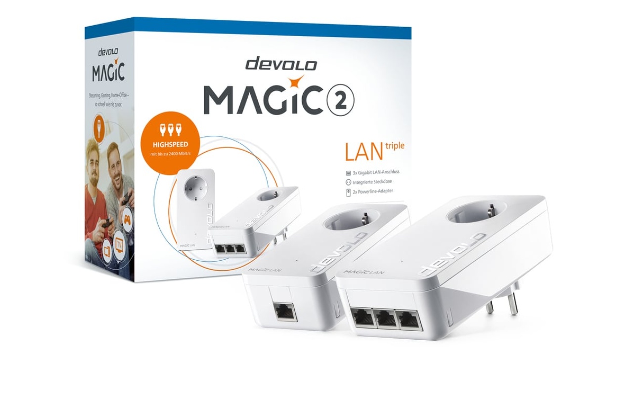 Devolo Magic 2 LAN Triple (8510) Powerline Διπλού Kit για Ενσύρματη Σύνδεση με Passthrough Πρίζα και 3 Θύρες Gigabit Ethernet 4250059685109