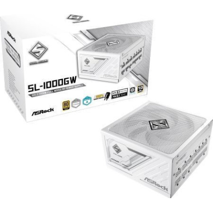 Τροφοδοτικό υπολογιστή της ASRock με ισχύ 1000W. Έχει πιστοποίηση 80 Plus Gold, που εξασφαλίζει τουλάχιστον 80% αποτελεσματικότητα στο μεταβαλλόμενο φόρτο
