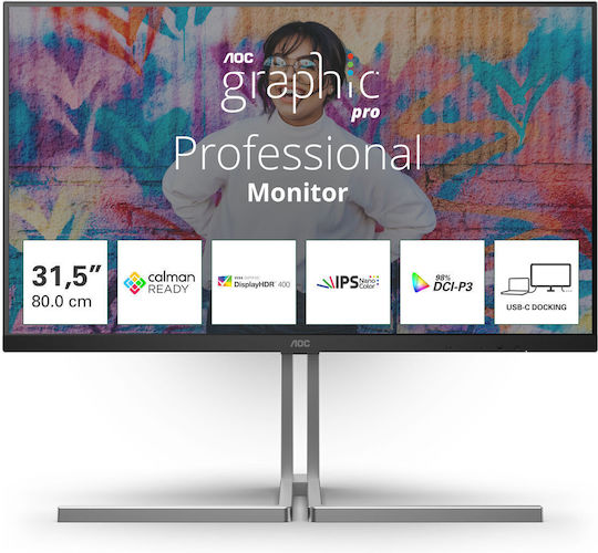 AOC U32U3CV IPS HDR Monitor 32″ 4K 3840×2160 με Χρόνο Απόκρισης 4ms GTG 4038986112086