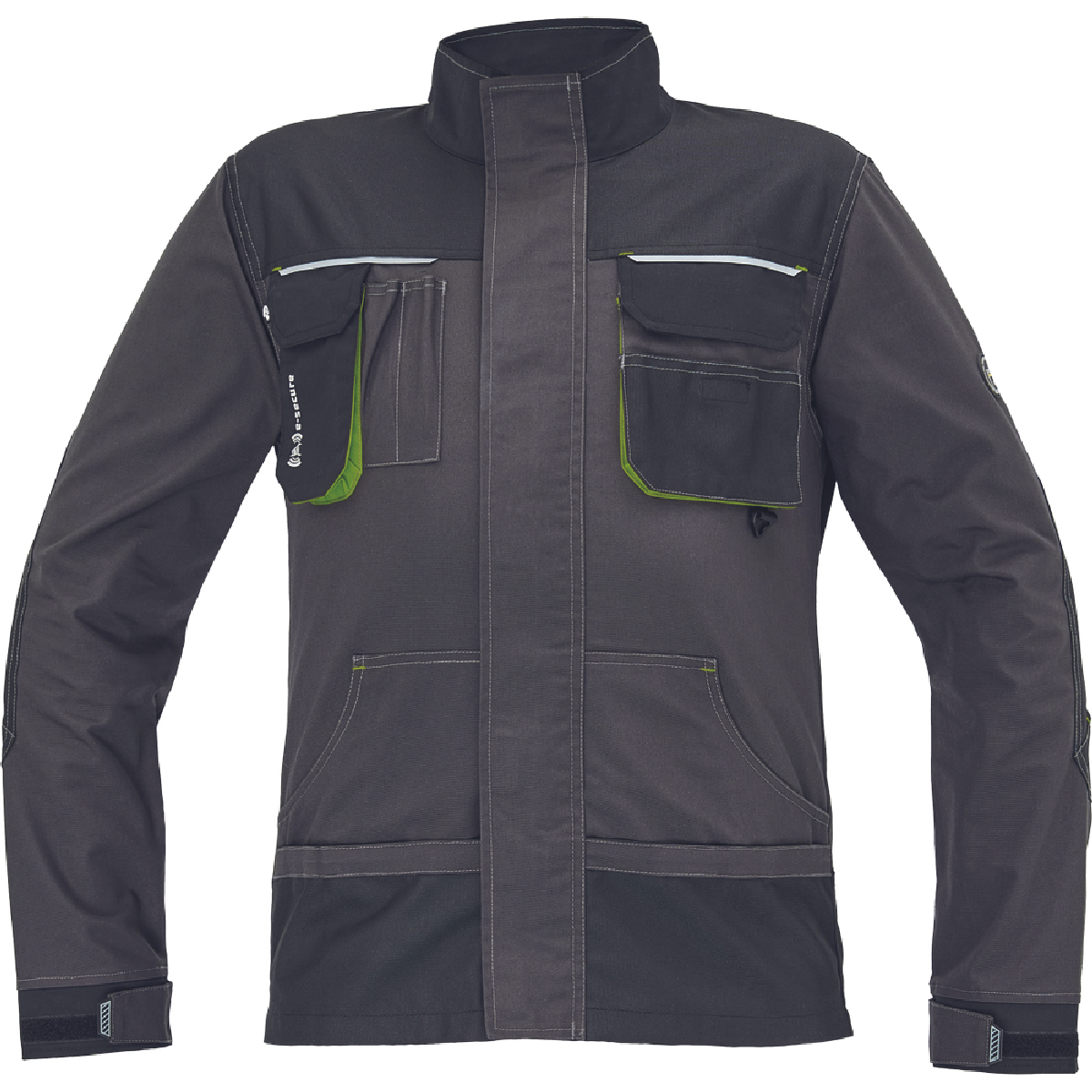 Το μπουφάν εργασίας Greendale συνδυάζει λειτουργικότητα και ανθεκτικότητα για τις απαιτήσεις του επαγγελματικού σας περιβάλλοντος. Το κούμπωμα velcro παρέχει εύκολο και γρήγορο κλείσιμο. Διαθέτει 2 μπροστινές τσέπες, 2 τσέπες στο στήθος και 1 τσέπη για κινητό τηλέφωνο, προσφέροντας οργανωμένο χώρο αποθήκευσης. Οι ενισχύσεις στους αγκώνες από ύφασμα Oxford 600D προσδίδουν αντοχή και ασφάλεια. Οι ανακλαστικές λεπτομέρειες και οι ραφές αντίθεσης προσφέρουν επιπλέον ορατότητα.