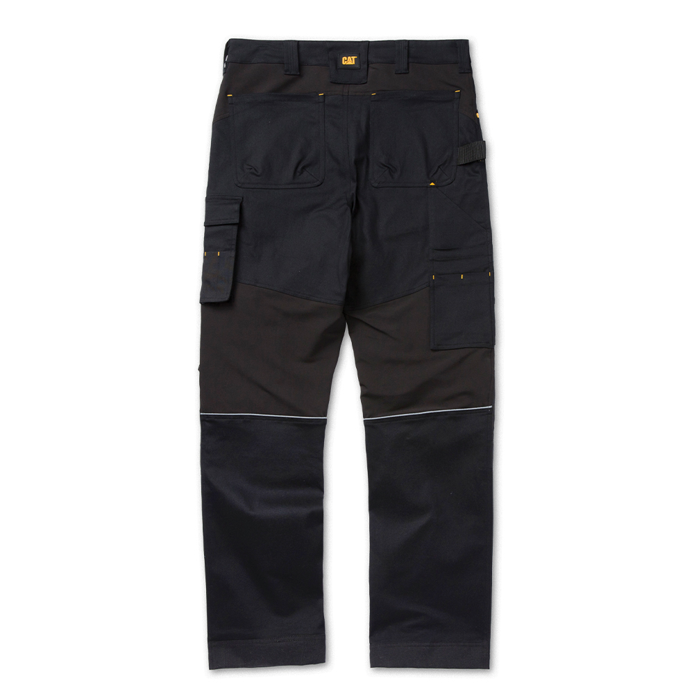 Το παντελόνι εργασίας CAT Tech Pro σε μαύρο χρώμα συνδυάζει ανθεκτικότητα και άνεση για επαγγελματική χρήση. Είναι εξοπλισμένο με θήκες για επιγονατίδες και αντανακλαστικές λωρίδες για ασφάλεια και ορατότητα. Η τσέπη cargo με ασφαλές κλείσιμο και οι πολυεπίπεδες τσέπες προσφέρουν λειτουργικότητα, ενώ οι ενισχυμένες μπροστινές τσέπες με μεταλλικό πριτσίνι είναι ιδανικές για εργαλεία και αξεσουάρ.
