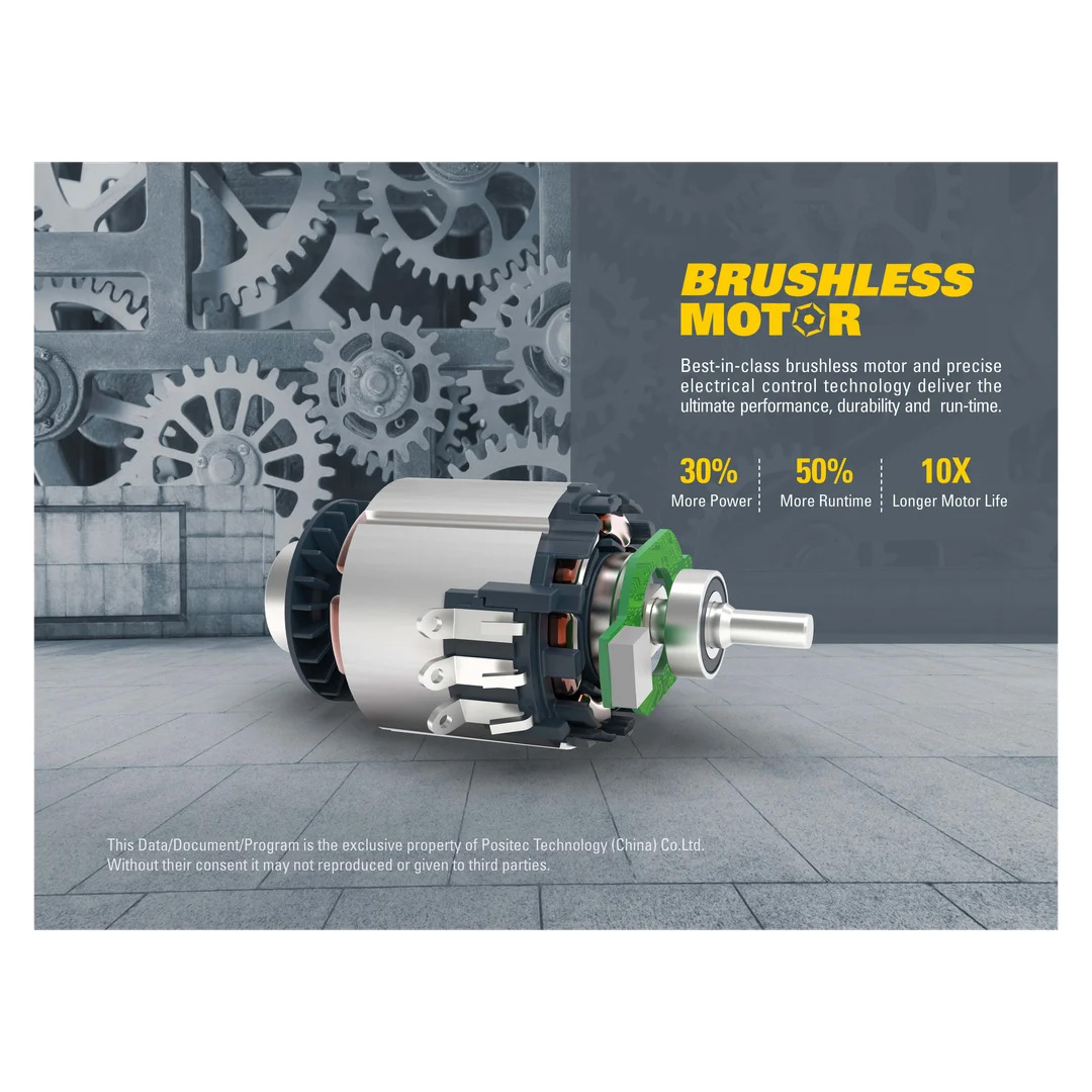 Ισχυρός κινητήρας χωρίς καρβουνάκια για 10 φορές μεγαλύτερη διάρκεια ζωής, υψηλότερη απόδοση και μεγαλύτερο χρόνο λειτουργίας σε κάθε πλήρη φόρτιση.