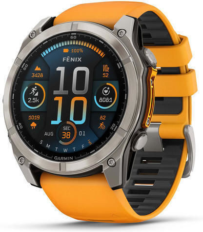 Garmin Fenix 8 Titanium 51mm Αδιάβροχο Smartwatch με Παλμογράφο (Sapphire, Titanium With Spark Orange/Graphite Silicone Band) 0753759338176