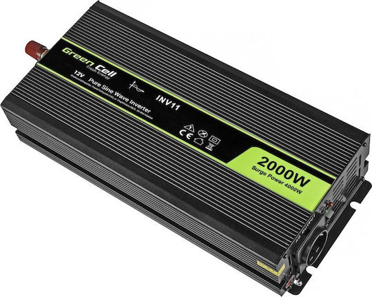 Green Cell INV11 Inverter Αυτοκινήτου Καθαρού Ημιτόνου 4000W για Μετατροπή 12V DC σε 230V AC με 1xUSB INV11 5902719427909