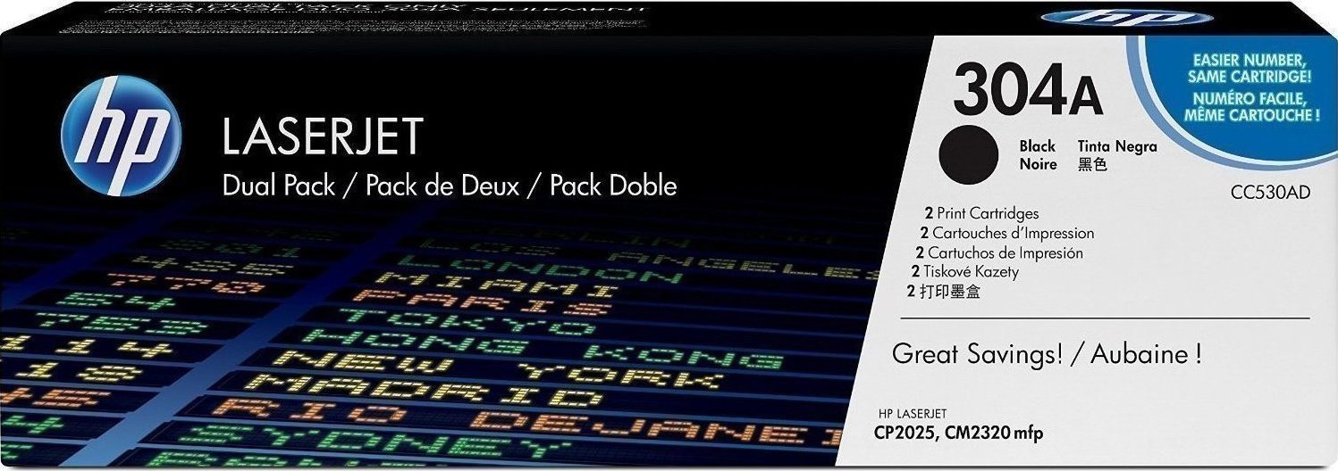 HP 304A Γνήσιο Multipack Toner Laser Εκτυπωτή Μαύρο 2τμχ (CC530AD) 0884420242611