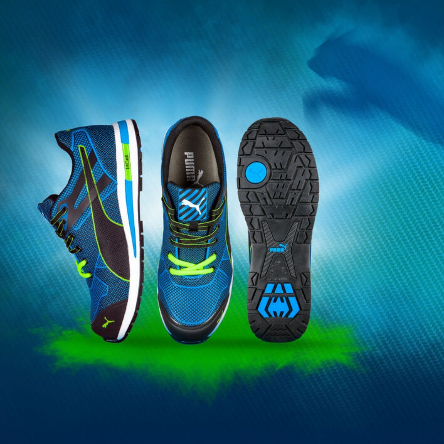 Το παπούτσι εργασίας PUMA Blaze Knit μπλε S1PS αποτελεί μια σύγχρονη επιλογή για επαγγελματίες σε logistics, αποθήκες, τεχνικά επαγγέλματα και ελαφριά βιομηχανία. Σχεδιασμένο για υψηλή κινητικότητα, συνδυάζει άνεση, ευελιξία και αθλητική αίσθηση με αξιόπιστη προστασία S1PS. Η εξωτερική σόλα από ανθεκτικό καουτσούκ παρέχει ασφαλή επαφή με το έδαφος και υψηλή αντιολισθητική απόδοση, ενώ αντέχει σε θερμοκρασίες έως 300°C. Η ενδιάμεση σόλα EVA απορροφά αποτελεσματικά τους κραδασμούς, προσφέροντας άνεση και φυσική κύλιση του ποδιού. Το idCELL στοιχείο στην περιοχή της φτέρνας μειώνει την καταπόνηση και την κόπωση, ενώ το rotation point στο μετατάρσιο υποστηρίζει τη φυσική κίνηση του ποδιού. Το πλεκτό άνω μέρος (knit) αγκαλιάζει το πόδι, προσφέροντας υψηλή διαπνοή και ελευθερία κινήσεων, συνδυάζοντας αθλητική αίσθηση με επαγγελματική λειτουργικότητα.