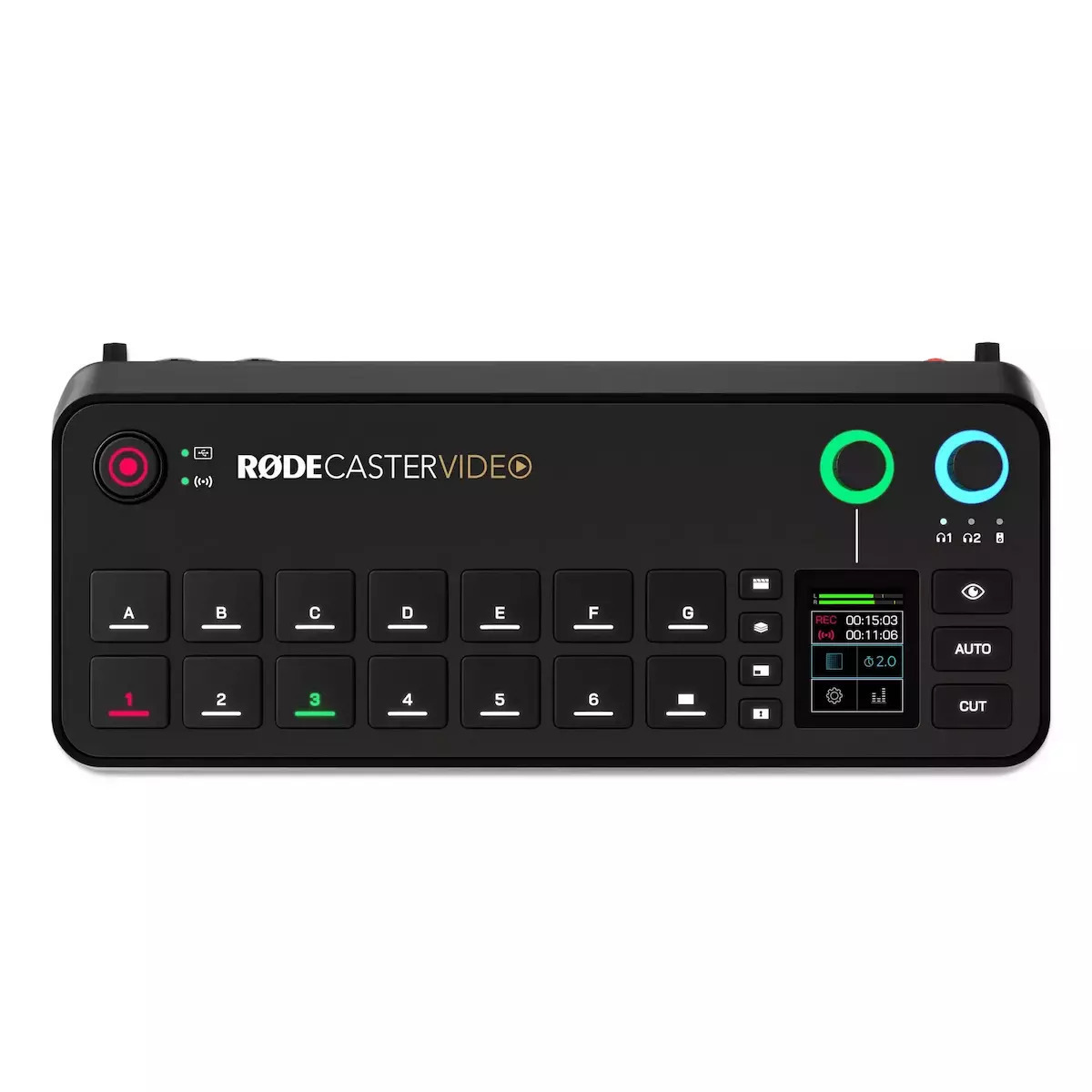 Το RODECaster Video είναι μια επαναστατική κονσόλα παραγωγής βίντεο και ήχου all-in-one που παρέχει εύκολα, έλεγχο σε κάθε στοιχείο του περιεχομένου σας. Συνδυάζοντας ισχυρές δυνατότητες εναλλαγής βίντεο (video switching), εγγραφής και παραγωγής με έναν πλήρως ενσωματωμένο επαγγελματικό μίκτη ήχου, προσφέρει έναν απρόσκοπτο τρόπο για να βελτιστοποιήσετε και να ανεβάσετε επίπεδο στη ροή εργασίας σας για παραγωγές στούντιο, βίντεο podcast και συνεντεύξεις και να μεταδώσετε ζωντανές εκδηλώσεις με broadcast ποιότητα.