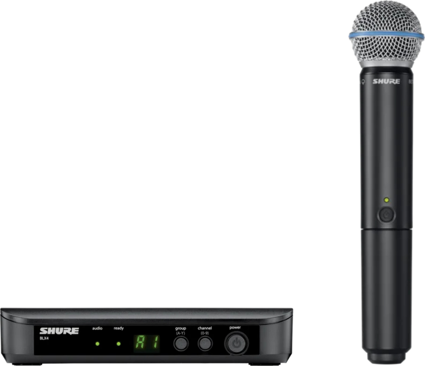 Η μετάβαση στην ασύρματη σύνδεση θα πρέπει να είναι απελευθερωτική, όχι μία πρόκληση. Ασύρματο σύστημα Shure BLX 24 με μικρόφωνο χειρός BETA 58 κατάλληλο για τραγούδι σε σκηνή.