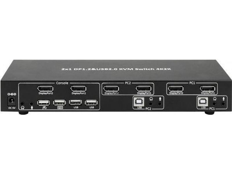 - Θύρες PC: 4x DisplayPort θηλυκό (2x ανά θύρα PC), 2x USB Type-B θηλυκό, 4x Jack υποδοχή 3.5 mm (2x ηχεία, 2x μικρόφωνο)